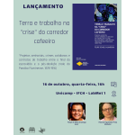 Lançamento: Terra e trabalho na "crise" do corredor cafeeiro O Cecult convida para o lançamento do livro Terra e trabalho na "crise" do corredor cafeeiro: projetos senhoriais, crimes cotidianos e contratos de trabalho entre o final da escravidão e o pós-abolição (Vale do Paraíba Fluminense, 1878-1916), de autoria de Felipe de Melo Alvarenga. Dia 16 de outubro, quinta-feira, às 16h Sala LabMet 1, IFCH - Unicamp O evento contará com a presença do autor e será mediado pelo Professor Ricardo Figueiredo Pirola. ... |